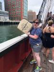 This was technically the end of the Freedom Trail for us. However, the next thing we did was still vital to both Boston and the American War for Independence. What did we do? Well, we threw some tea into the harbor! That’s right, we went to the Boston Tea Party Ships and Museum. Everybody got assigned an alias of a real person who participated in the Tea Party (I was Benjamin Edes, one of the editors of the Boston Gazette). After reenacting the meeting at Old South, we headed down a ramp to one of the ships in the Boston Harbor, the Beaver. (There were three ships that were involved in the Boston Tea Party: the Dartmouth, Elinor, and Beaver). Aboard the ship, we were told that throwing tea into the Harbor was no easy feat. When full, these chests would weigh 400 pounds each. They were packed as tightly as possible with loose-leaf tea, covered in a layer of lead (similar to aluminum foil), put into a wooden chest, and covered in canvas. So the fact that these patriots cleared all three ships in only three hours goes to show how outraged and vindictive they were over the tax on tea. As our tour guide said, it wasn’t the tax itself. The tax was only 3 pennies per pound of tea. Those who could afford the tea could afford the tax. The issue instead was the fact that British parliament chose to levy this tax to help pay for the French and Indian War, which the colonists help fight in alongside the British. So they thought they had already paid the price in the lives lost. In the museum itself (which you could not take pictures in), they have an original tea chest that was not destroyed on display.