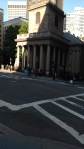 We then walked to the Old South Meeting House, yet another church. Like the King’s Chapel Burial Ground, we went in here on Saturday, so I will talk about this building more later. The next place on the trail was the Old State House. The east side of this building is where everything went down, so to speak. On the ground outside this side, there is a monument where the Boston Massacre took place. Also, the east facade has a balcony where the Declaration of Independence was read. As a result, that night when it was read, Bostonians had a huge bonfire where they burned relics of the British Empire.
