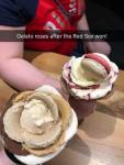 After the game, we walked to a gelato place that actually formed the gelato into a giant rose, with the flavors being the petals. I got a macaron on mine, but it would have been amazing without it as well.