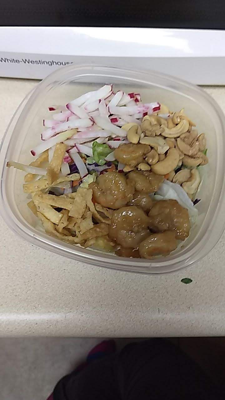 I also served my shrimp on an Asian-style salad. I got a regular salad mix of lettuce, carrots, and red cabbage, and added some sliced radishes, cashews, wonton strips, a little bit of cheese, and and Asian vinaigrette! But feel free to make this your own! Check out my final product (before it was all mixed together):