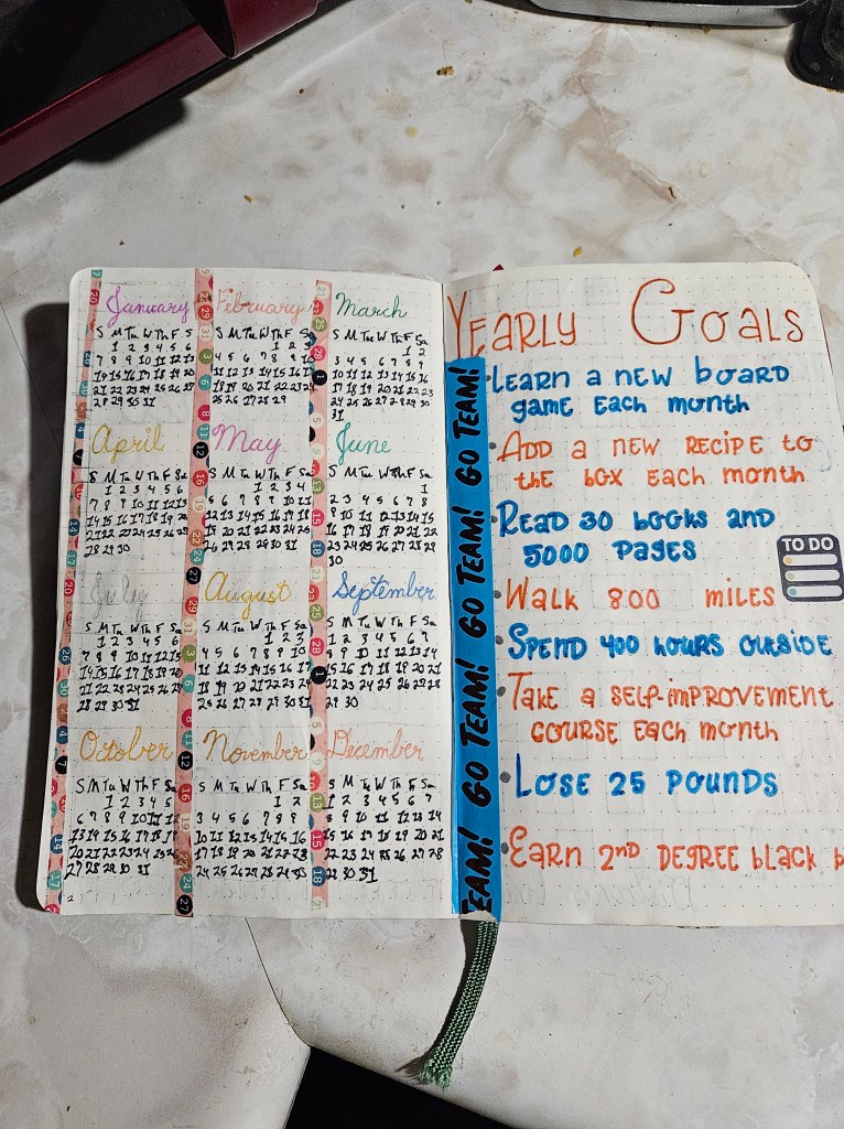 - Yearly Goals- walking, weight, reading, board games, spending time outside