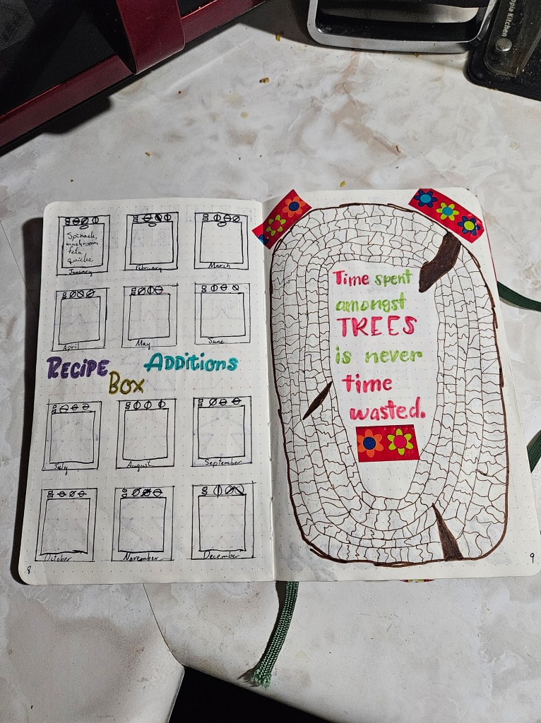 How I wanted to organize and plan out the whole journal took a lot of work. I often tackled just a few pages at a time. Even before I designed the pages, I would leave notes of what that page was going to have so that it was easier to find later on.