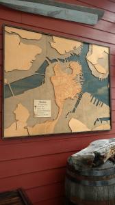 This map shows the coastline of Boston in 1773 (The light wood/tan) and now (gray). Red star is current location, and green dot (slightly northwest of star) is where Boston Tea Party actually occurred